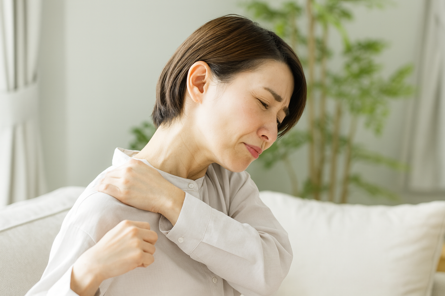 一般的には、筋肉のこりや疲労が関係している場合、動かしたときに痛みが強くなり、休んでいるときは軽くなる傾向があると言われています。反対に、神経や関節の影響がある場合は、安静時でも鈍い痛みが続いたり、肩や腕にしびれを伴うこともあるようです(引用元:KRM整骨院)。