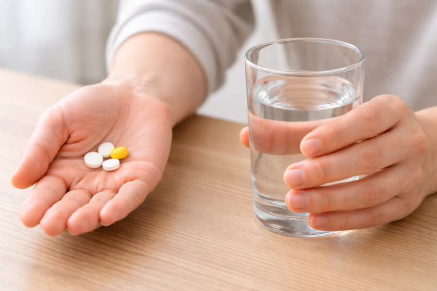 薬と水を手に取る