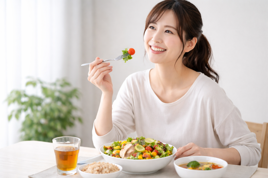 ヘルシーな食事を楽しむ女性