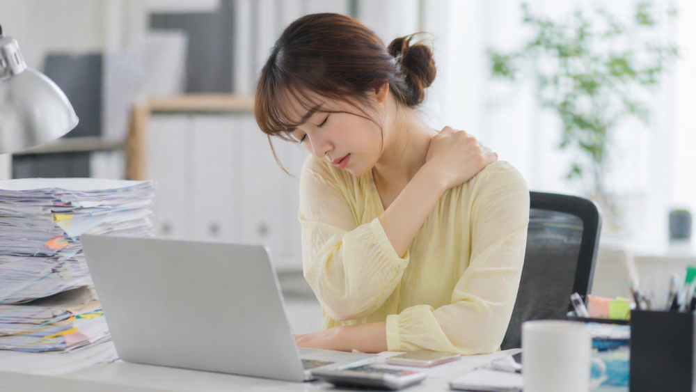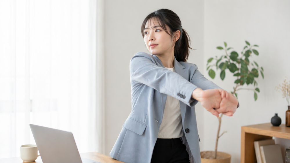 例えば長時間のデスクワークが続くと、肩甲骨を支える筋肉を十分に使わない状態が続くことがあります。