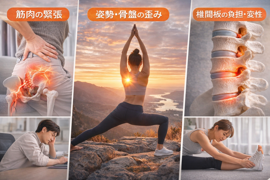 また、長時間のデスクワークやスマホ操作などで姿勢が崩れると、腰や骨盤に負担がかかりやすくなります。