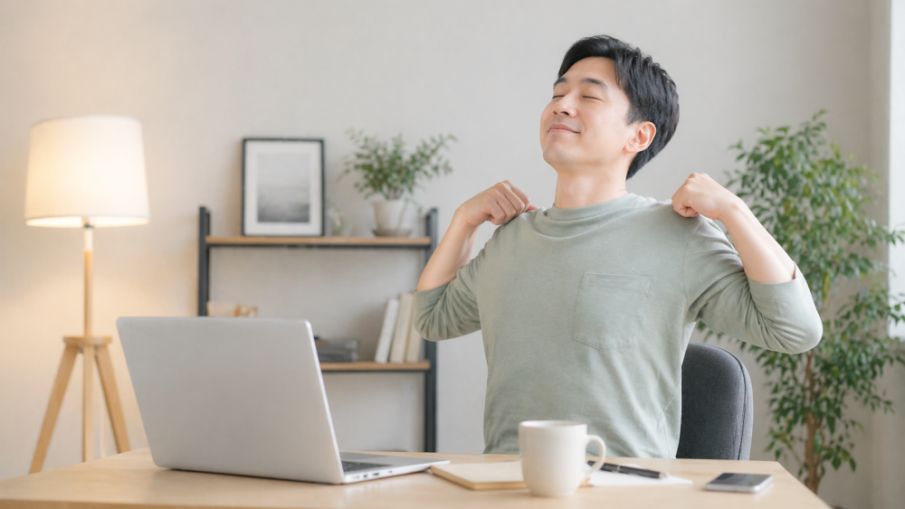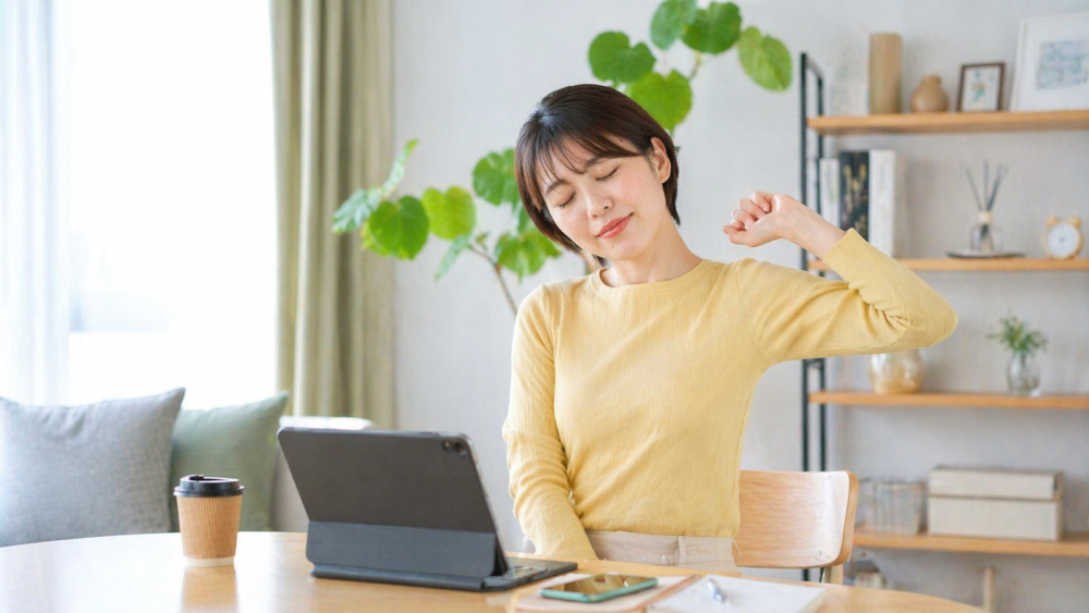 「ちょっと肩がつらいな」と感じたときは、休憩を取ったり体を軽く動かしたりすることも一つの方法と言われています。