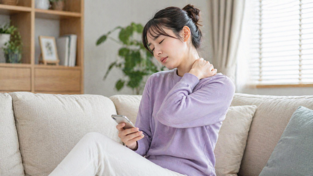 デスクワークやスマートフォンの操作が続くと、肩や首の筋肉は同じ姿勢で働き続ける状態になりやすいと言われています。こうした状態が長く続くと、筋肉が固まったように感じることがあります。