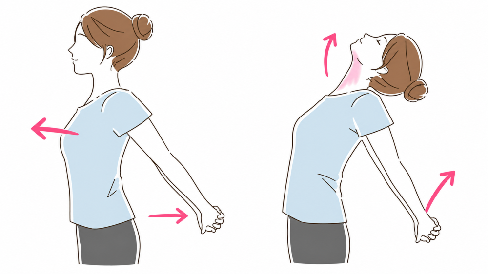 背中で手を組むストレッチ