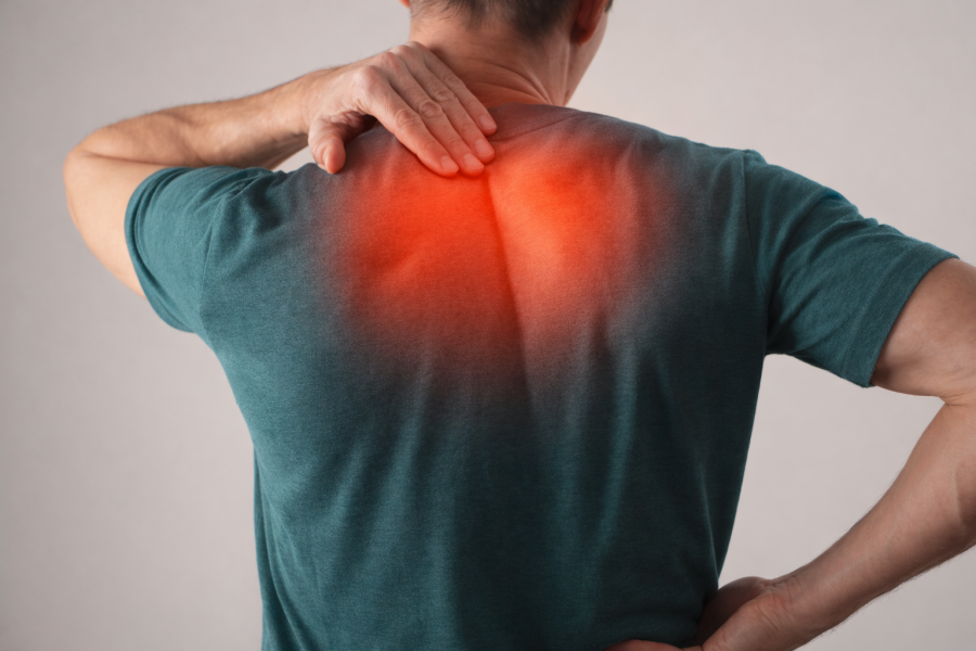 背中の中でも、特に多いのが肩甲骨まわりや背骨沿いのラインです。「片側だけが痛い」というケースもめずらしくありません。