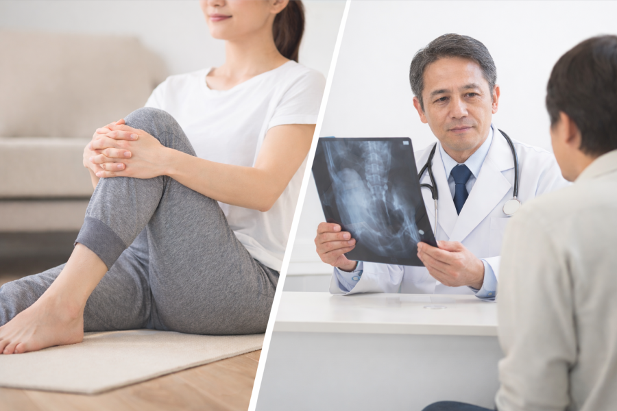 簡単なチェックとしておすすめされるのが、股関節を動かしてみる方法です。仰向けで膝を抱える動きや、足を外側に開く動きをしてみて、「引っかかる感じがあるか」を確認します。このときに違和感が強い場合は股関節の影響が考えられると言われています。逆に、こうした動きでは問題がなく、姿勢によって痛みが変わる場合は腰の関与も疑われます。あくまで目安ですが、自分の状態を知るヒントにはなります。
