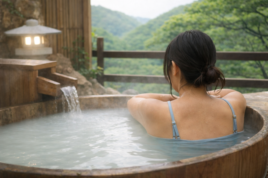 温泉はただ入るだけでもリラックスできるものですが、入り方を少し意識することで体への負担を減らしやすくなるとも言われています。特に腰痛が気になる方は、無理をせず体の様子を見ながら入浴することが大切だと紹介されています。