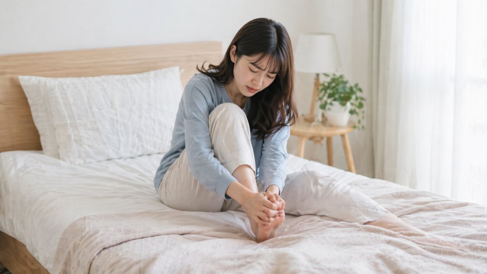 夜中のこむら返りが続く場合、睡眠の質が関係する可能性もあると言われています。
