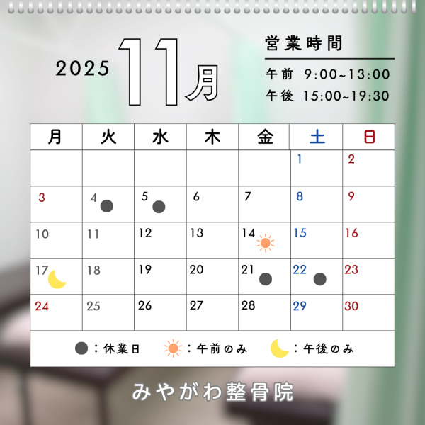 11月のお休みのお知らせ